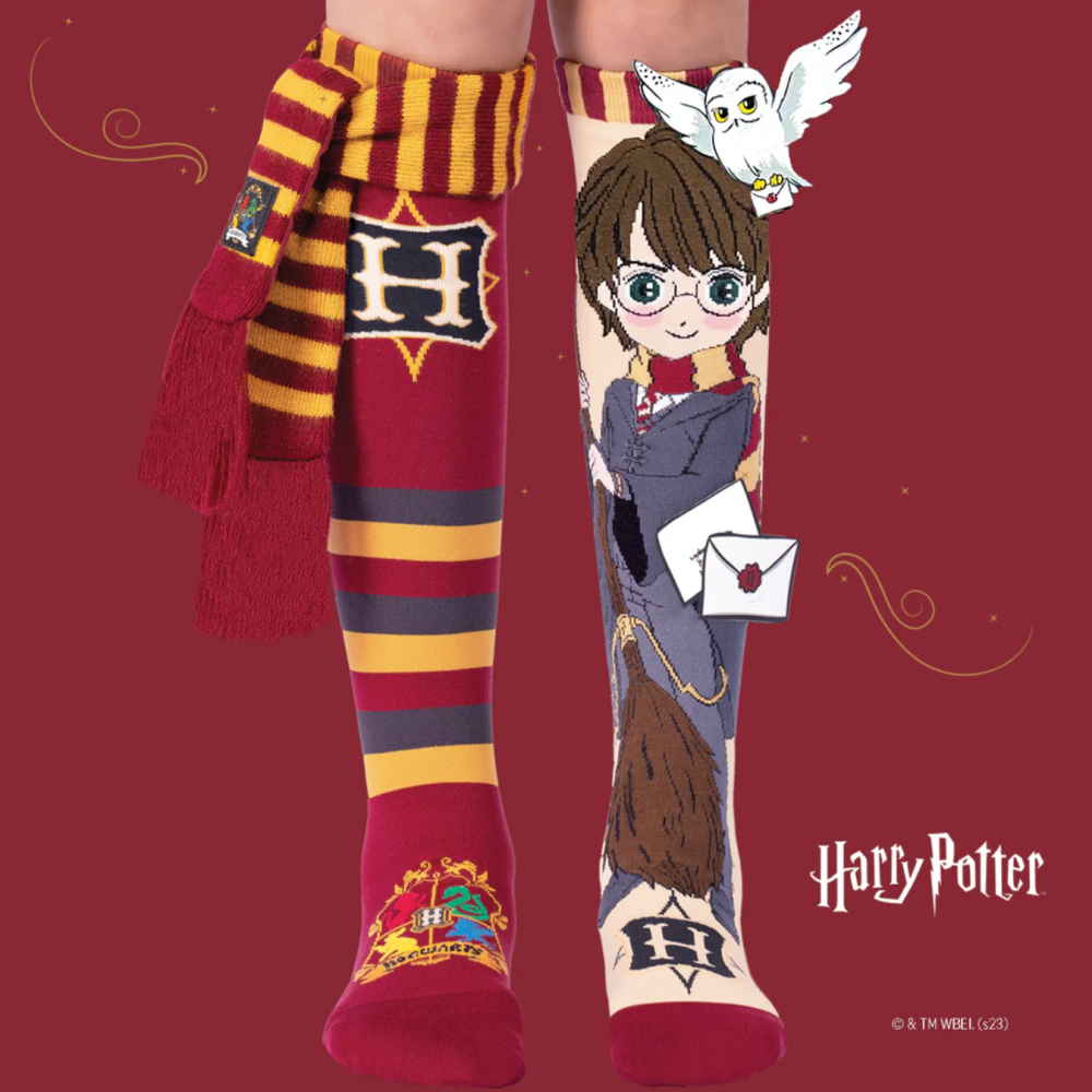 Step into the world of Hogwarts with our newest Harry Potter Socks featuring iconic Griffindor house colours, a 3D legendary Hogwarts Acceptance letter and Hedwig the Owl attached and a scarf that whispers tales of bravery and honour. Embark on a journey into the wizarding world with flair, and let the magic begin!🔮