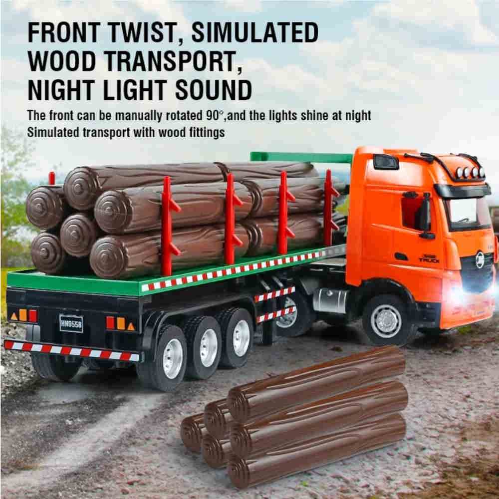 The Huina 1313 remote controlled Wood Transport Vehicle is 1:18 in scale size and features a 9 channel remote at 2.4ghz.