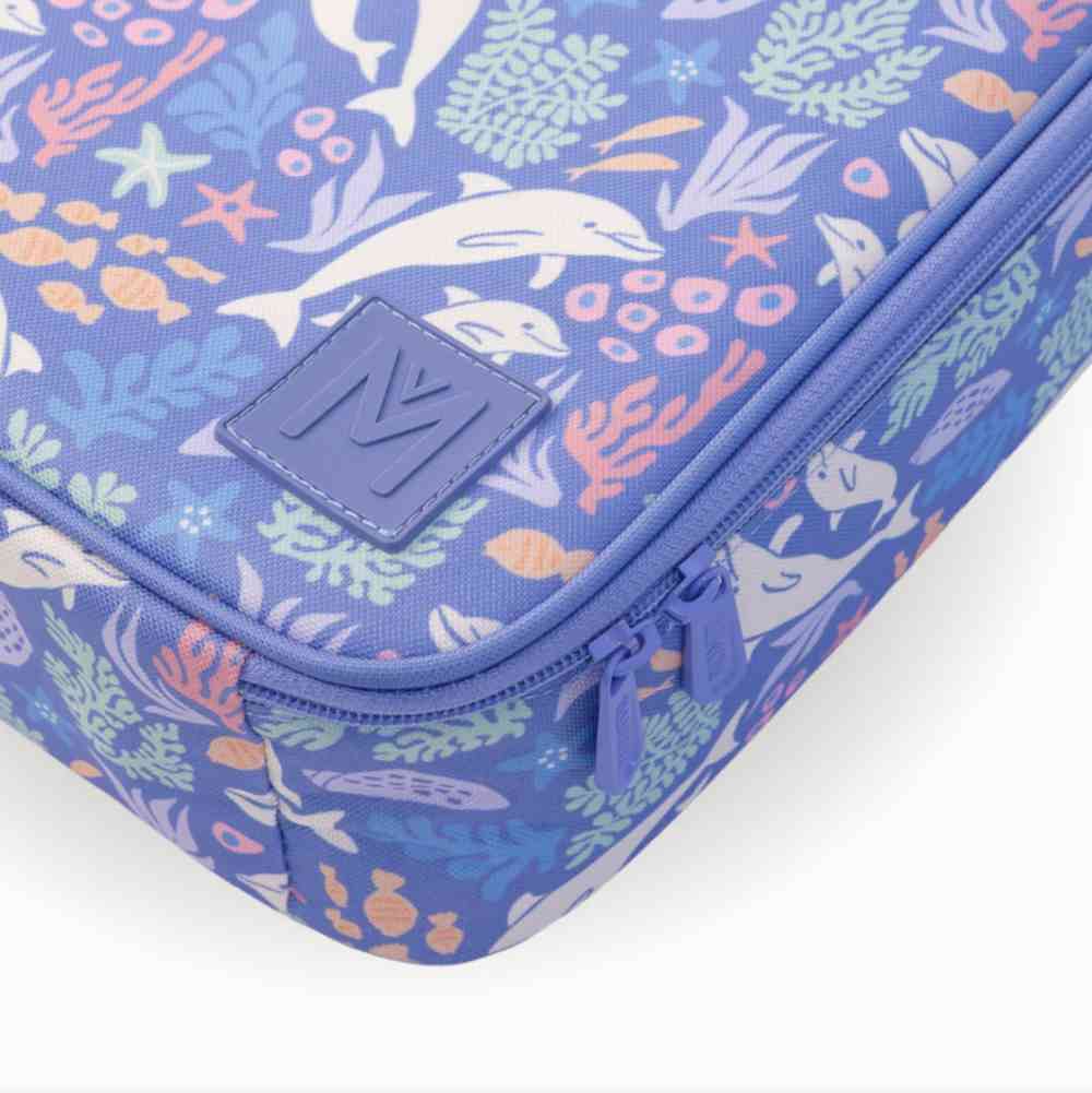 Made to last, MontiiCo Large Insulated Lunch Bag-Dolphin Dreams, has a super strong, aluminium lining to keep everything fresh - no soggy sandwiches here!